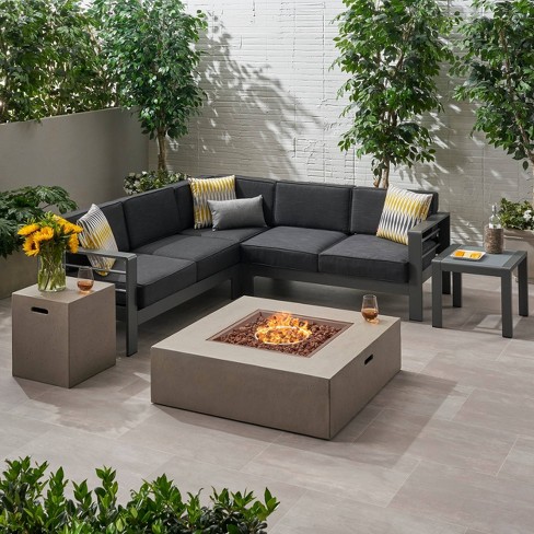 Akoya outdoor essentials rectangular modern concrete fire pit table. It is weather resistant and the decorative base will. When you purchase a fire pit table set, you get everything you need to enjoy your outdoor fire pit, including warmth from the … 30 stainless steel burner system creates up to 45,000 btus. Seating options available include dining chairs , lounge chairs, sectionals, and combinations of various types to seat anywhere between one and eight or more people comfortably. Get free shipping on qualified fire pit patio sets or buy online pick up in store today in the outdoors department. A large sectional sofa, club chair, and storage coffee table feature modern silhouettes for a fresh take on classic wicker furniture. The 8 best fire pits for outdoor entertaining. Casual outdoor fire pit sets bring comfort and lounging to new. Bond rockwell 68156 30″gas fire table. A fire pit table set is always an excellent addition to any outdoor space. If you're planning a new outdoor lounge area or rethinking an existing space additionally, fire pit arrangements put a fresh spin on the standard outdoor lounge layout while featuring sectional sofas and a fire pit table that represent lloyd flanders' masterful use of. An outdoor fire pit table is a beautiful and functional addition to any patio or backyard.